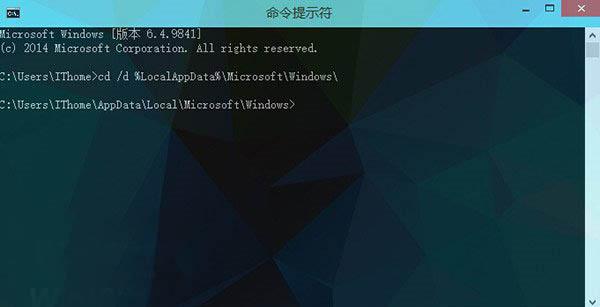 2、在开始菜单上,点击鼠标右键,选择“命令提示符”。然后键入如下内容“cd /d %LocalAppData%MicrosoftWindows”(同样不含两端的引号),并按下“回车键”;