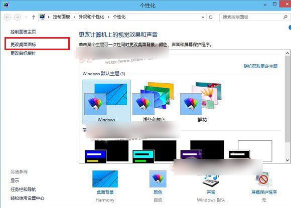 二、进入Win10桌面个性化设置后,再点击侧面的“更改桌面图标”,如下界面图所示。