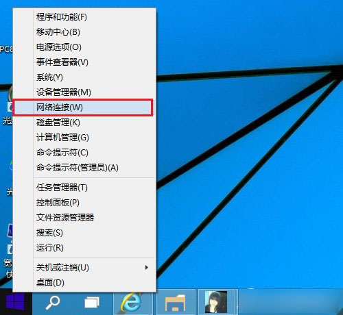 1、在Windows 10桌面最左下角的【Windwos开始图标上右键】,在弹出的菜单中点击打开【网络连接】,如下图所示。