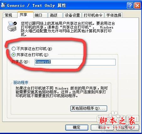 3、之前会提示你怎么共享,选“只共享打印机”,我们选共享,如图。点“应用”。