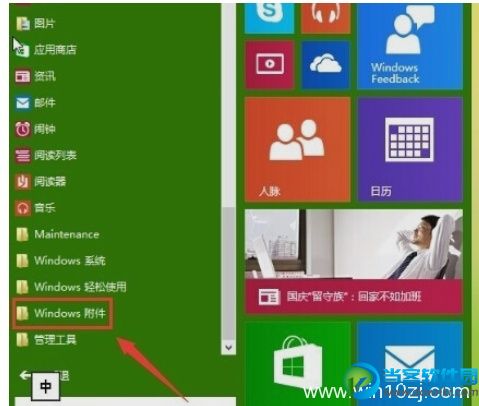 在所有应用中找到【WINDOWS 附件】点击一下它打开这个文件夹。