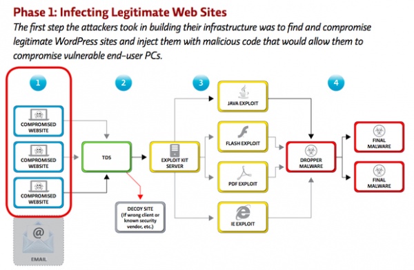 Qbot会使用名为“hooking”的浏览器技术来偷窃在线网银帐号。尽管通常来说在线银行都会采用SSL/TLS加密,但是Qbot能够嵌入到浏览器中阅读已经完成传输后的字符。当用户在受感染WordPress网站之后设备就会感染,在访问其他网站的时候会对其进行注入。