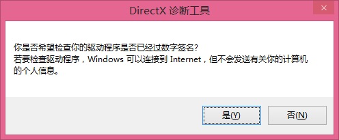之后会弹出一个Directx诊断工具提示框,我们直接点击“是”,如下图所示。