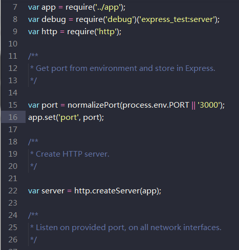 默认端口是3000,可以到bin里边的www文件查看,或者自己修改吧~