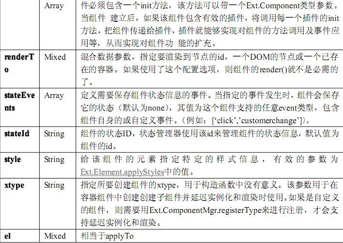 由于组件都继承自Ext.Component,因此所有组件可能有共同的属性,如下图